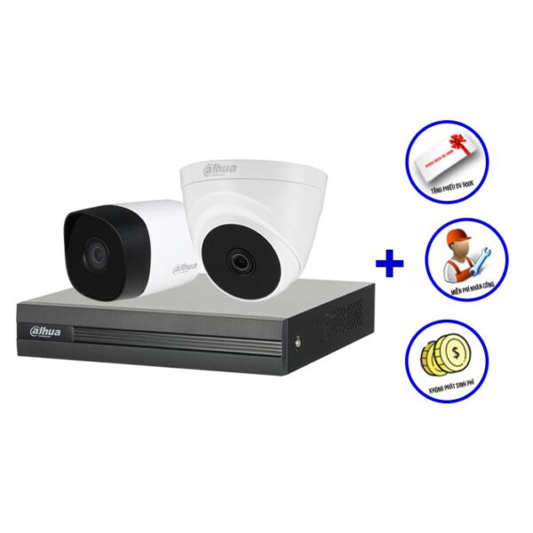 Trọn bộ 2 camera DAHUA gói Silver SIÊU TIẾT KIỆM, camera công nghệ HDCVI, 2.0 megapixel, quan sát xa 20 mét, đầu ghi hình HDCVI 4 kênh chất lượng cao, phụ kiện + vật tư phụ chất lượng loại 1, ưu đãi tặng thêm phiếu dịch vụ Tiêu chuẩn 500 ngàn.